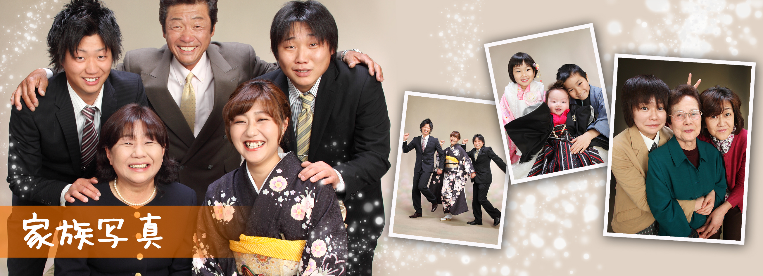 家族写真・メ長寿祝いなどの撮影メニューのご案内をいたしております。 家族の記念を写真に残しませんか。