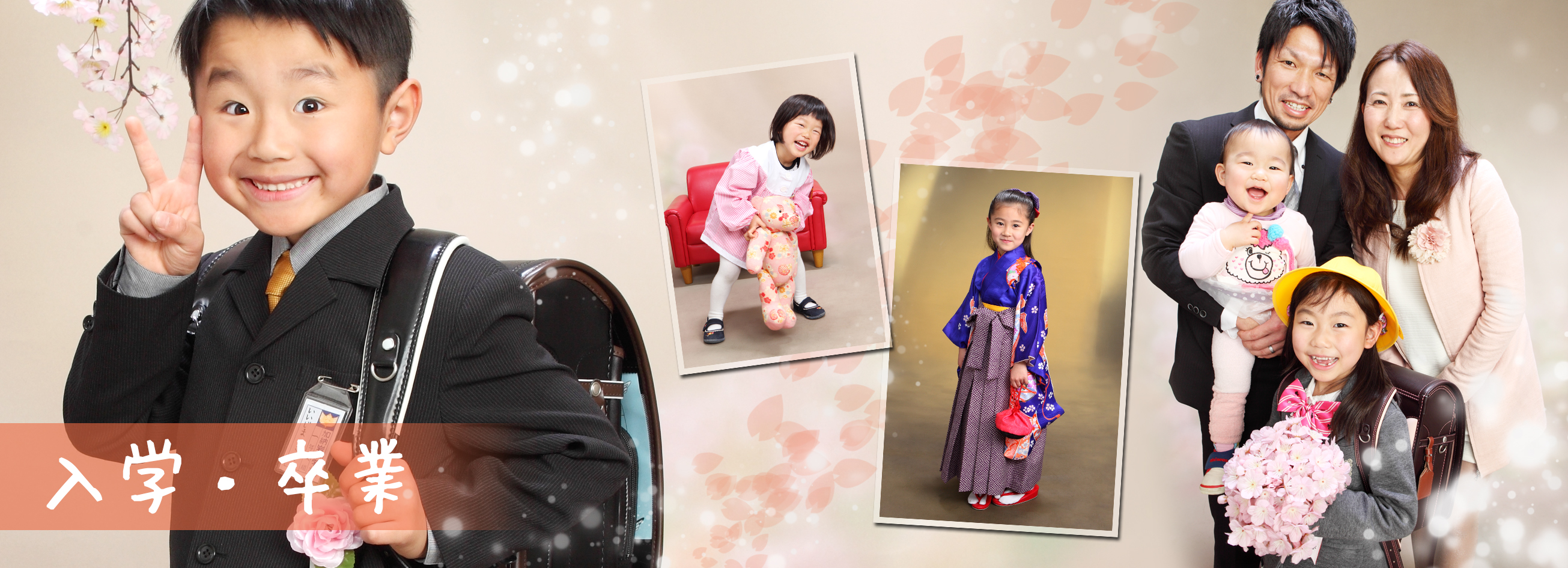 ご入園・ご入学/ご卒園・ご卒業の撮影メニューのご案内をいたしております。 お子さまの人生の大切な節目を思い出に残る写真に収めてみてはいかがでしょうか。 入学・卒業の記念写真撮影は、地笑写真館にお任せください。